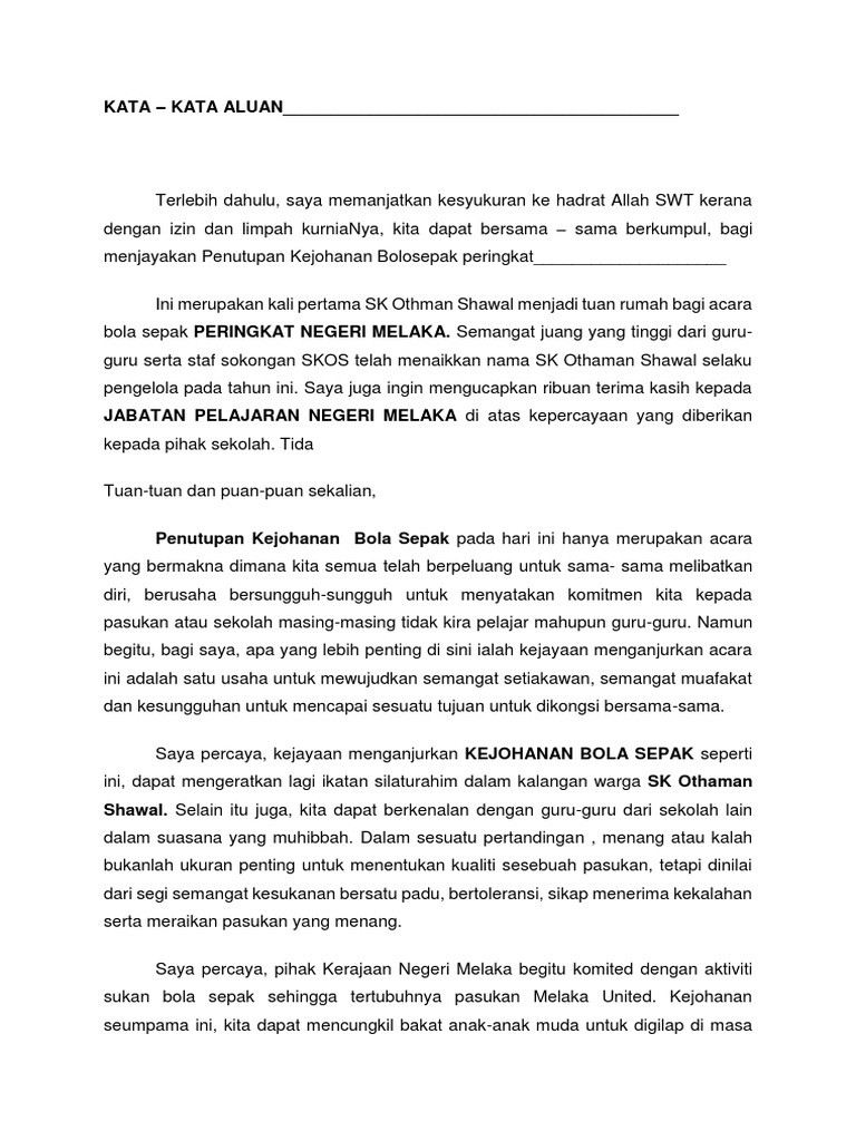 UCAPAN ALU-ALUAN PENGERUSI MAJLIS 410-420 PETANG. Kejohanan ini juga dapat membantu guru-guru pelatih untuk memahirkan diri mereka dalam menguasai kemahiran permainan bola jaring ini. TUJUAN Kertas kerja ini dikemukakan untuk memohon kebenaran dari pihak pentadbiran SMA Lughatul Quran khususnya dari Pengetua bagi Pertandingan Bola Jaring Peringkat Asrama 2018.